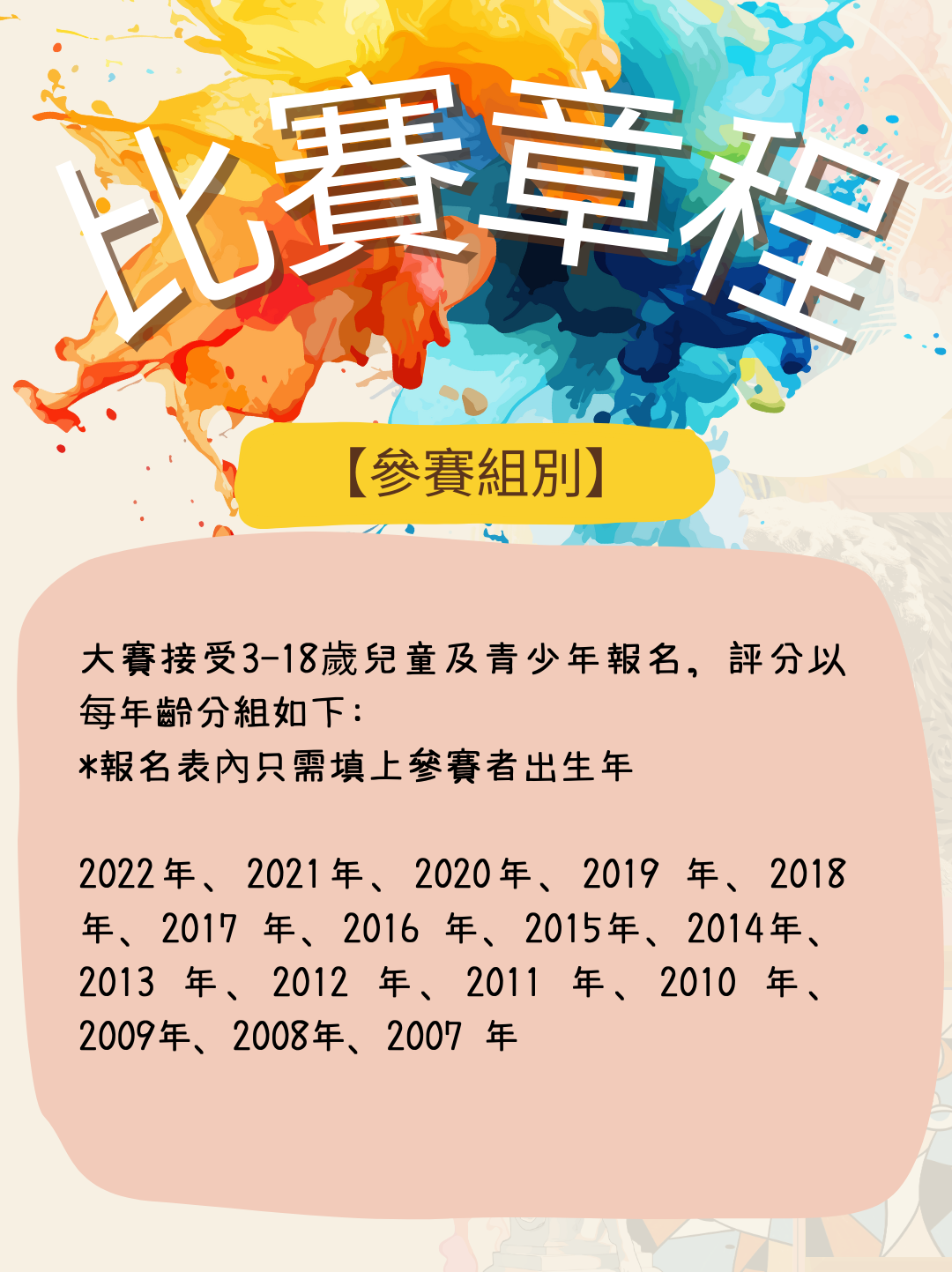 參賽組別: (按出生年份分組)-接受3-18歲兒童及青少年