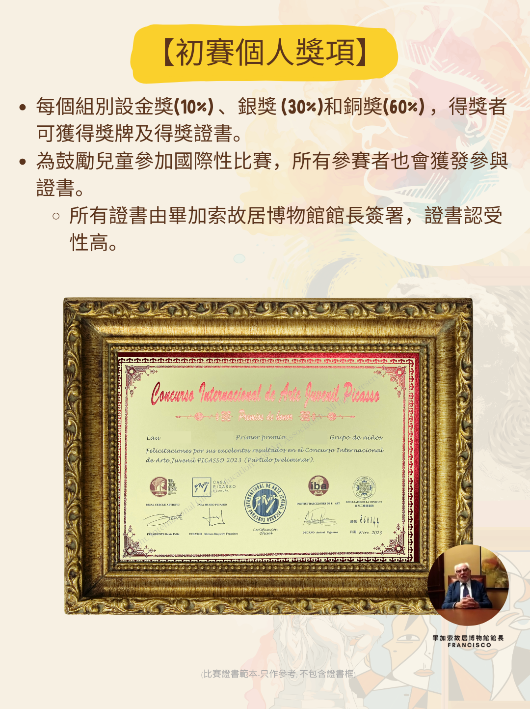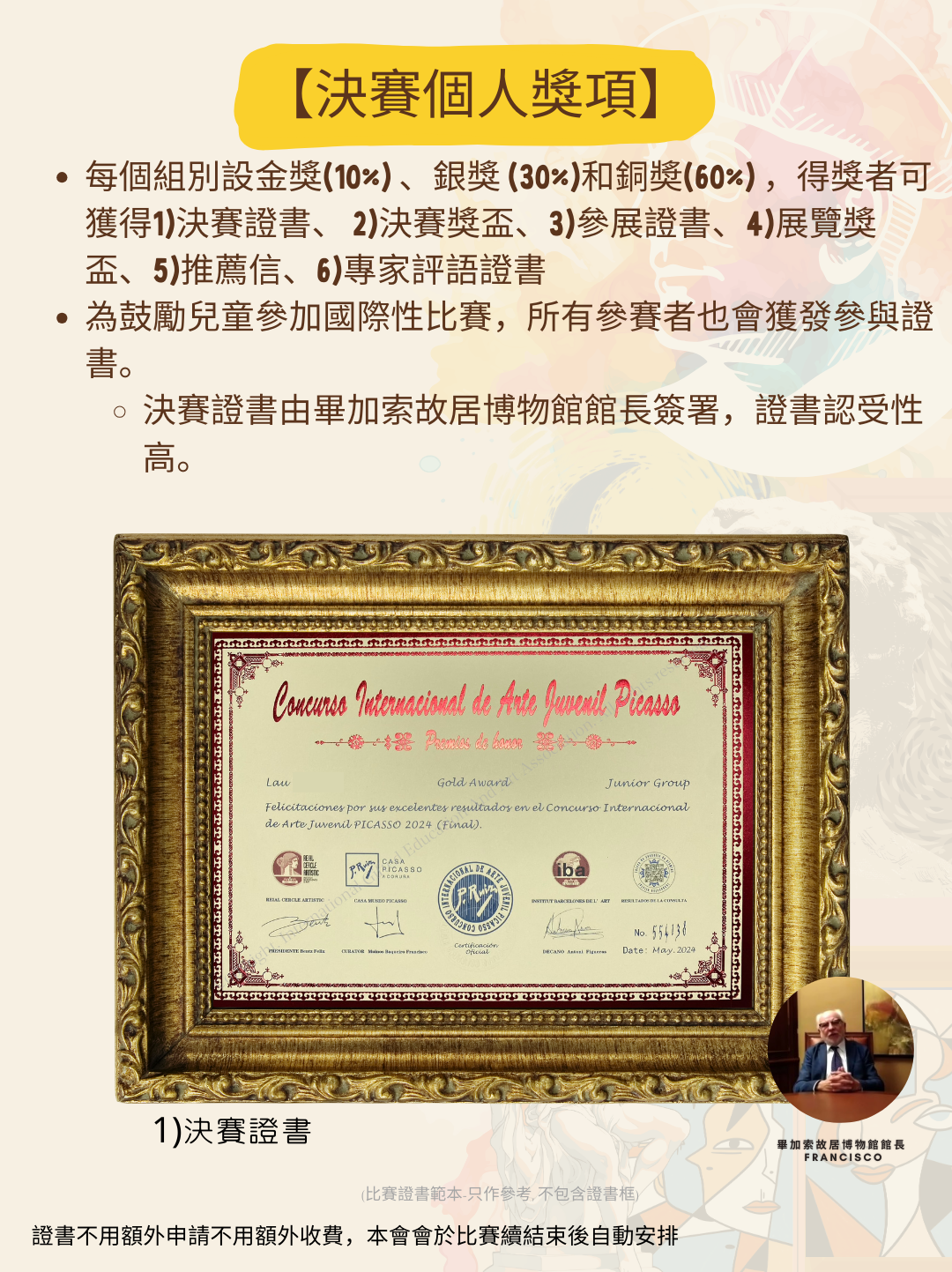 ※ 所有證書由畢加索故居博物館館長簽署