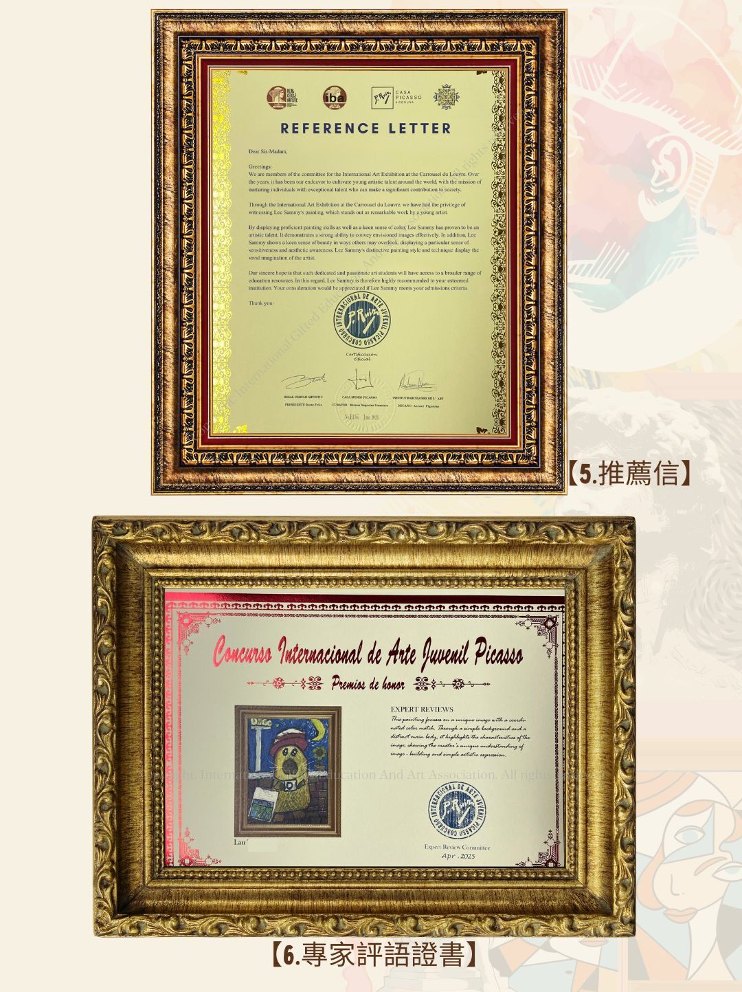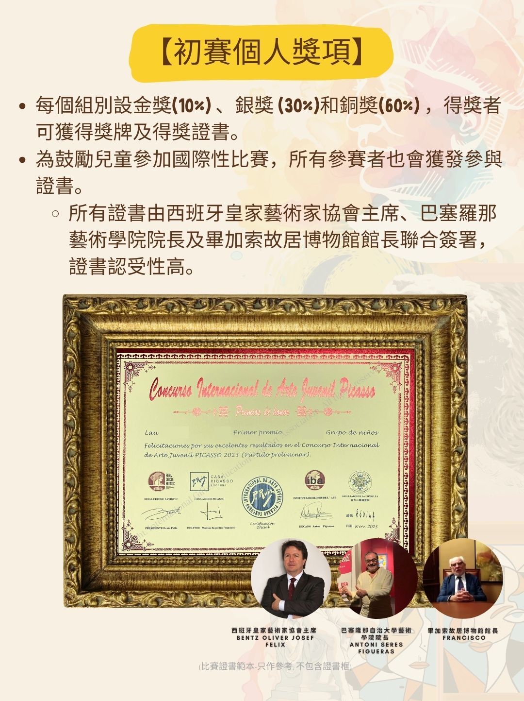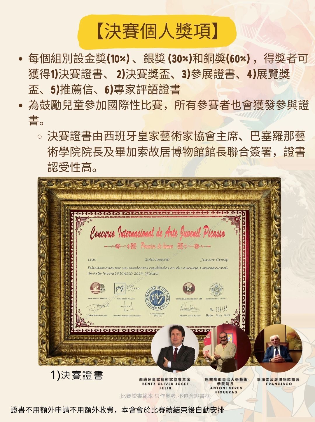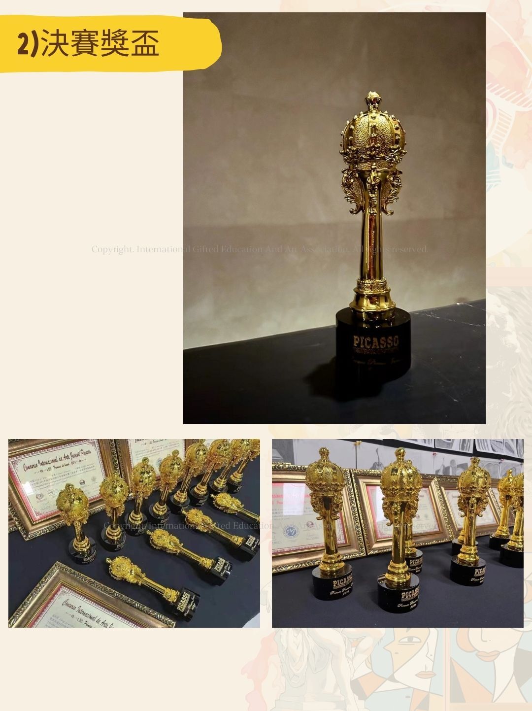決賽暨展覽:設有1)決賽證書、2)決賽獎盃、3)羅浮宮參展證書、4)專家評語證書、5)推薦信、6)參展獎盃